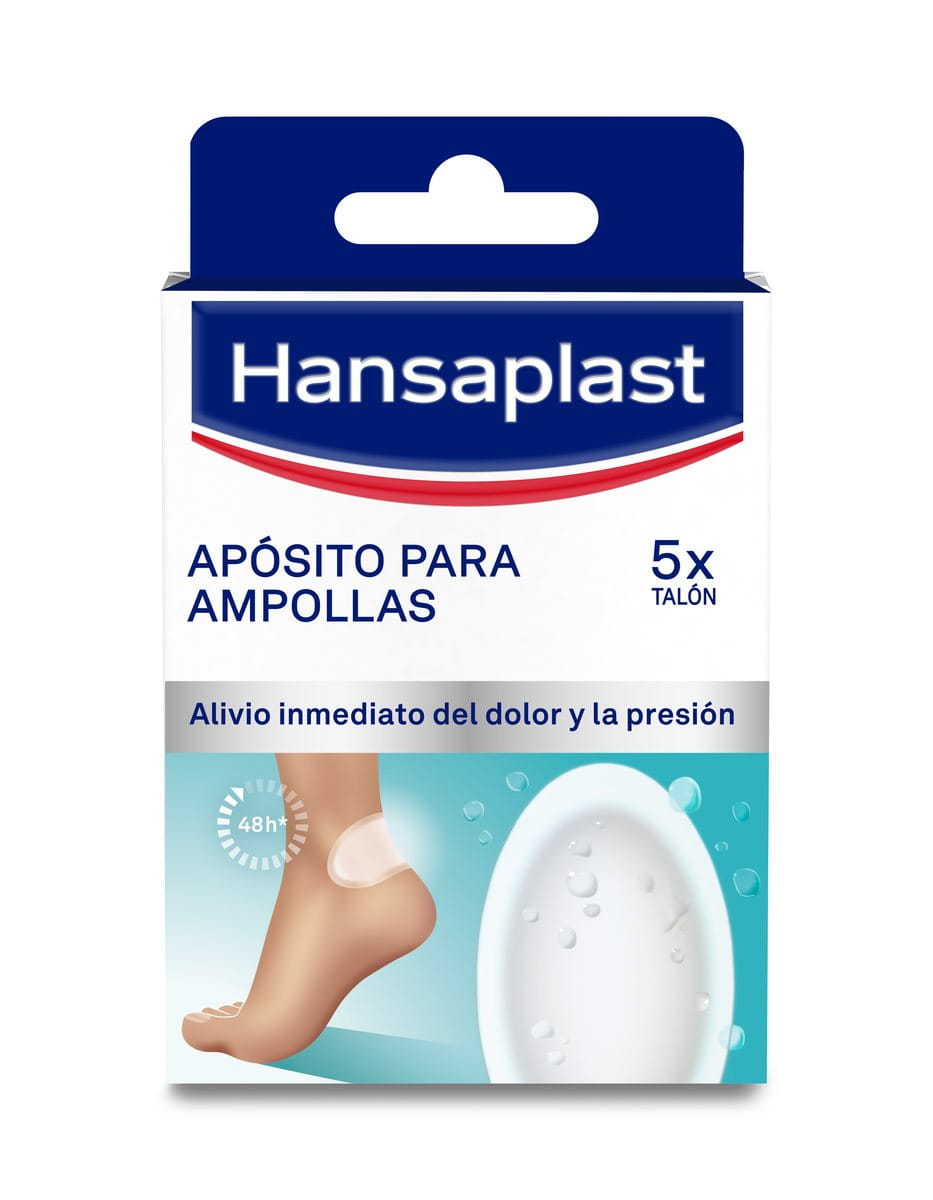 Las ampollas no se deben abrir ya que la piel de la ampolla es una protección frente a las infecciones. Incluso aunque la ampolla ya esté abierta, no se debe eliminar la capa de piel restante. En ambos casos es importante proteger la herida frente a la contaminación y las influencias externas. La zona afectada se debe limpiar y secar con cuidado antes de aplicar el apósito. Si la ampolla ya está abierta, recomendamos volver a desinfectar. El Apósito para Ampollas de Hansaplast, por su tecnología de hidrocoloide, alivia el dolor provocado por la presión y la fricción, y crea un entorno óptimo de cicatrización de las heridas en húmedo que permite una curación más rápida. Durante el proceso de curación, la ampolla queda sellada y protegida en condiciones de seguridad, frente a la suciedad y las bacterias.