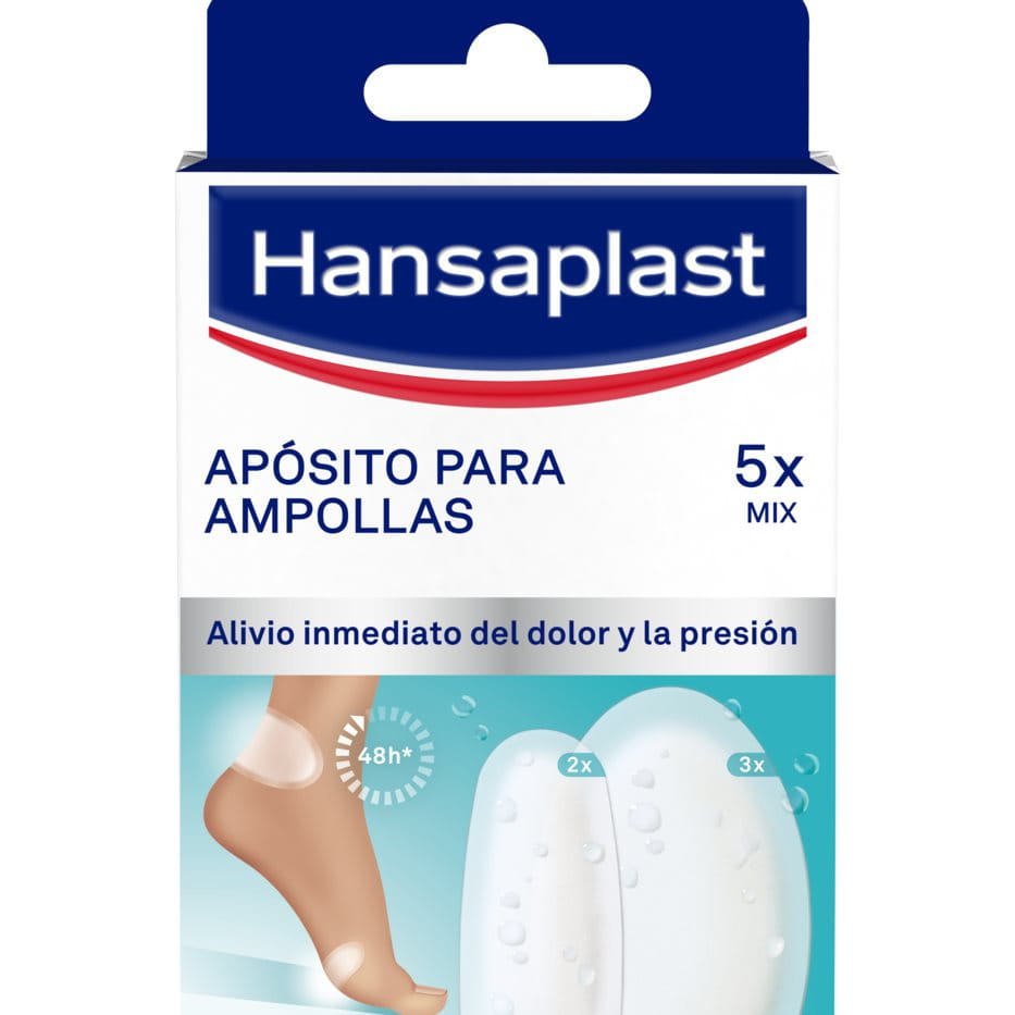 Si la ampolla ya se ha formado, es necesario proteger la zona para que no sufra más presiones y no se contamine. El Apósito para Ampollas de Hansaplast con su tecnología de hidrocoloide absorbe el fluido de la ampolla y crea un entorno para la cicatrización de las heridas mediante la humedad óptima que permite la curación más rápida. Al mismo tiempo, la ampolla queda sellada y protegida de manera segura frente a la suciedad y las bacterias. El Apósito para Ampollas de Hansaplast actúa para evitar que se siga aplicando presión y alivia el dolor de inmediato.